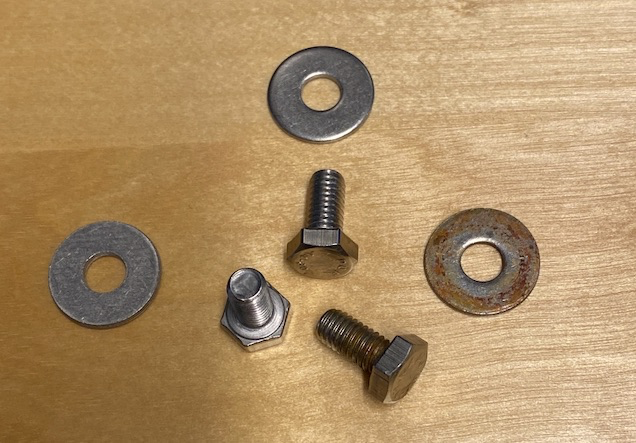 Da jeg omsider fikk spurt en ekspeditør på Jernia på Storo, fikk jeg beskjed om at stedet å gå til er Zachariassen Jernvare på Torshov. Og i dag var jeg innom, og fikk med meg riktige, syrefaste skruer og skiver til den nette pris av kr. 30,-