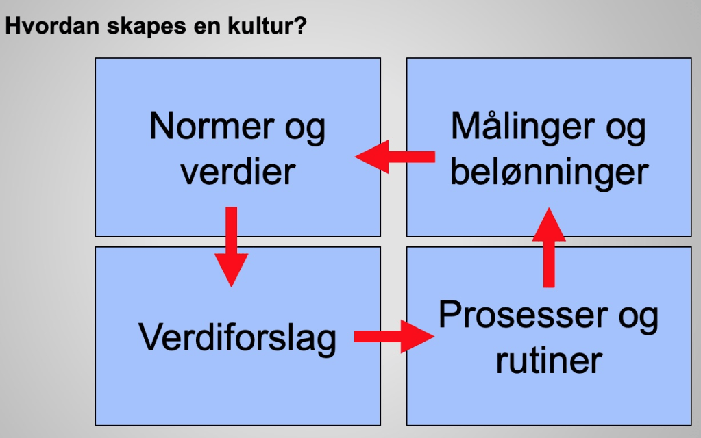 - Etterhvert gikk jeg videre til neste punkt: Kort om hva som danner kultur i en organisasjon, deretter en poll om hvilken av de fire faktorene som vil være mest vanskelig å endre, deretter diskusjon i grupper og plenum igjen.