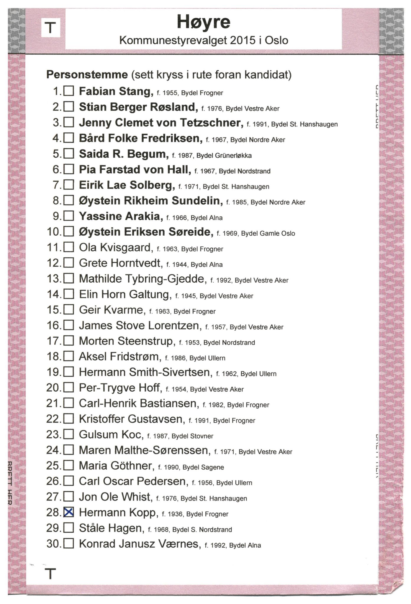 Så hvis du skal stemme Høyre, sett ett kryss for mannen på plass 28. Hvis du ikke skal stemme Høyre, kan du likevel stemme på Hermann ved å skrive ham inn på stemmeseddelen til det partiet du stemmer på (noe som i politikken visstnok kalles en «slenger»).