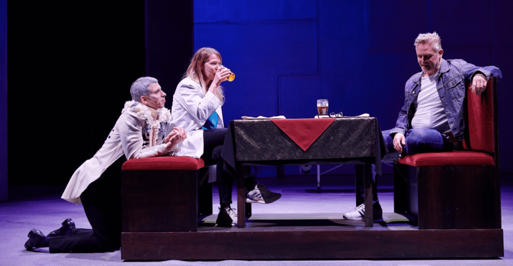Marx skal en gang ha sagt at historiske hendelser gjentar seg – først som tragedie, så som farse. Her er det omvendt: Første akt er ren gjøgling med et rikt persongalleri og en hovedperson som konsekvent tar det dårlige av to mulige valg. Andre akt er mørkere, det støttespillende plastskjelettet svikter og konsekvensene av kortsiktig smartelefonering gjør seg gjeldende. Slutten er litt famlende og gir håp om et lys i tunnellen, men jeg hadde kanskje forventet mer av en treffsikker avslutningsreplikk i et stykke som dette.