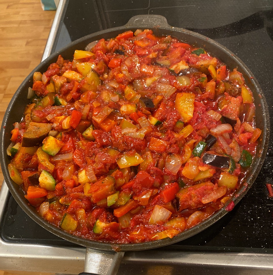 Jeg har i det siste fått for meg at jeg skal lære meg å lage litt mat, så her er oppskrift jeg har laget endel ganger (så lenge at jeg har begynt å eksperimentere). Ratatouille er en grønnsakstuing fra Nice, og siden jeg stadig holder kurs der nede og bestiller ratatouille som tilbehør var jo det naturlig å lære seg å lage den selv.
